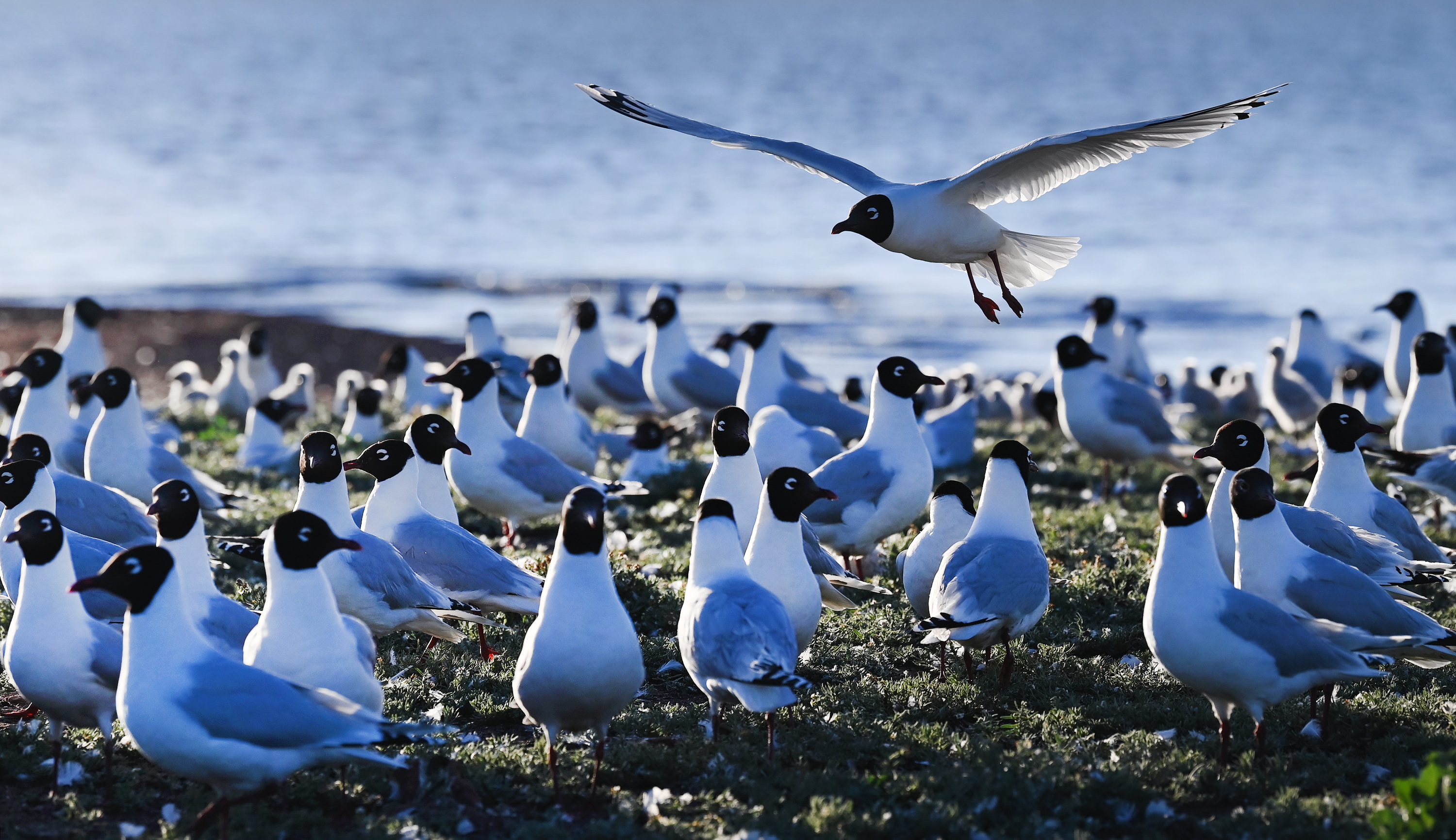 伴随毛乌素沙漠的治理,位于榆林境内的红碱淖湿地生态得到不断改善,栖息繁殖的遗鸥种群数量逐年增加,已然成了遗鸥的乐园,每年从西伯利亚迁徙而来的遗鸥在这里觅食嬉戏、孵化后代。