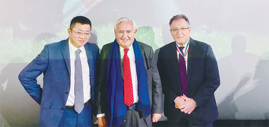 拉法兰(左)毕松(中)富塞出席。(图片来源:本文图片均由欧洲时报记者孔帆 摄)
