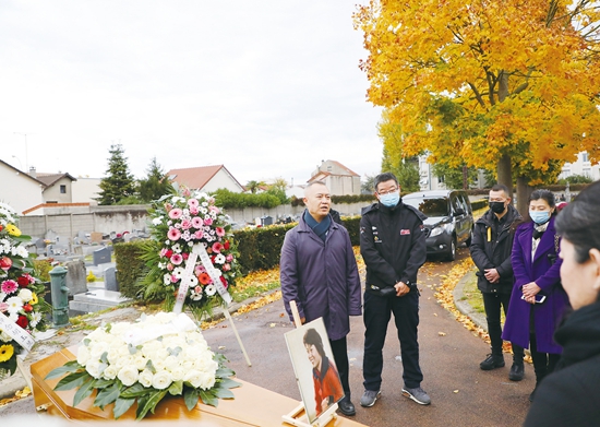 来宾们向胡玉兰女士的遗体告别。(图片来源:欧洲时报记者黄冠杰 摄)