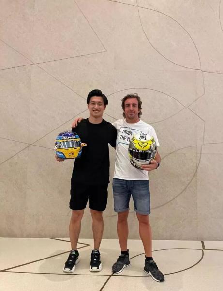 周冠宇和偶像阿隆索交换赛车头盔(图片来源:本文未标注图片均由受访者供中国侨网)