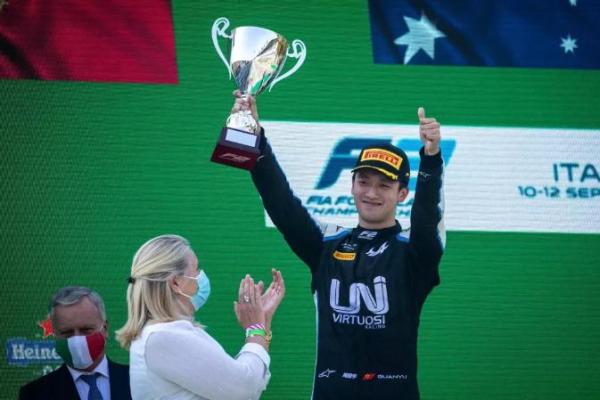 周冠宇在2021F2赛季中收获4次冠军、9次登上领奖台。