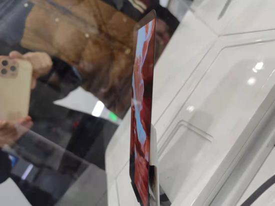 维信诺超薄柔性AMOLED显示屏。(图片来源:本文图片均由欧洲时报记者戴九悦 摄)
