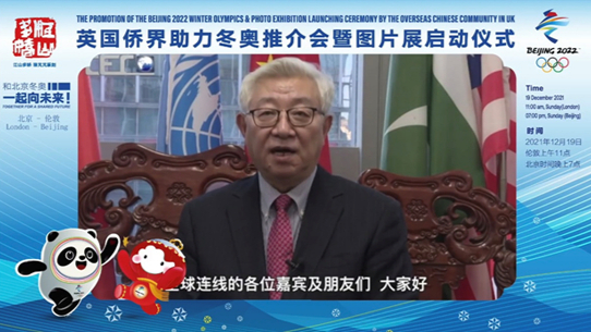 北京市归国华侨联合会副主席兼秘书长李登新、河北省侨联副主席孙晋康、中国国际教育电视台台长李世强与英国知名侨领伦敦华埠商会主席邓柱廷OBE先后发表热情洋溢的致辞,高度评价了本次活动,并表示北京已准备就绪,隆重召开第24届冬奥会,该盛事的举行离不开海外同胞尤其是英国侨胞的努力和支持。世界文化多元一体,各国多样的文化也是奥林匹克文化的重要组成部分,此次冬残奥会让世界文明再一次相遇交汇,身处海外的华侨华人是促进中英两国沟通交流的桥梁与纽带。英国范·科霍恩男爵与男爵夫人也受邀出席,他们表示由于疫情影响,北京冬奥会的举办将为世界发展带来重要影响,并预祝奥运健儿们在赛事中取得令人满意的成绩。
