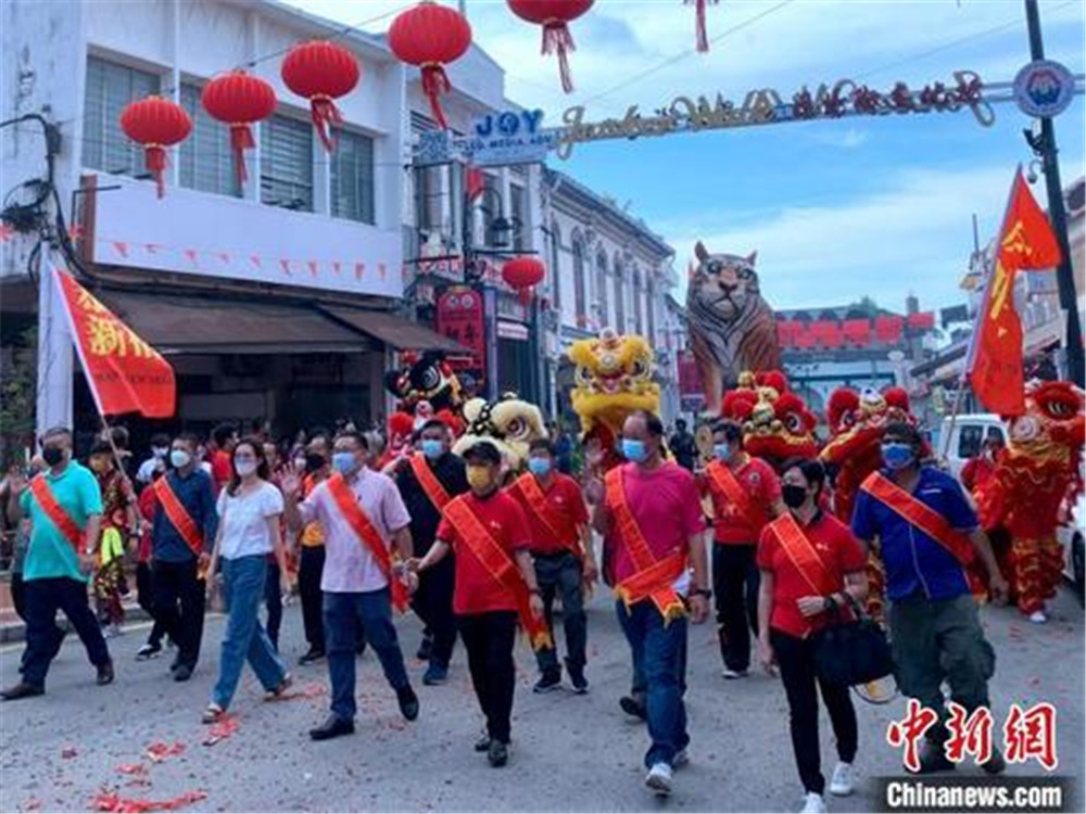 中新网报道,据介绍,马六甲新春年景嘉年华会已迈入第32年。记者在现场看到,这里张灯结彩,高挂大红灯笼、悬吊贺岁红菱,尤其还立起巨型生肖吉祥物“金虎”,充满华人传统节庆的氛围。