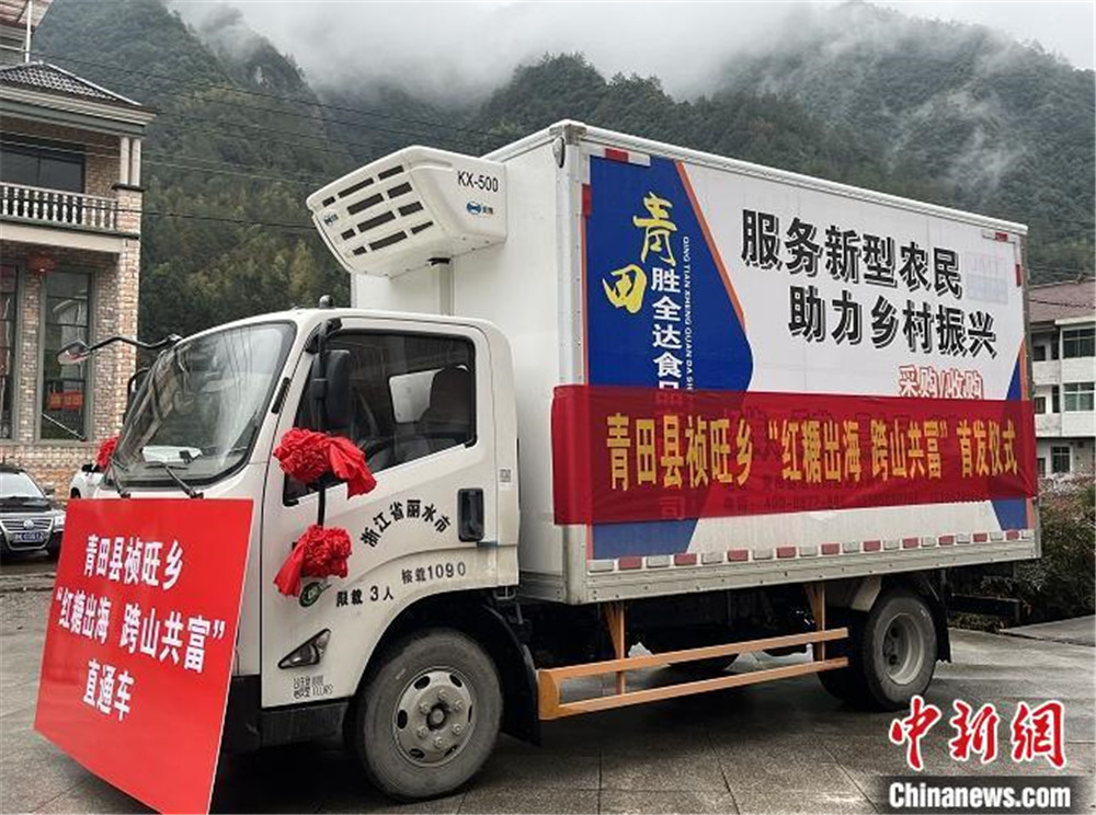 浙江青田祯旺乡“红糖出海·跨山共富”直通车首发。(图片来源:中新网)