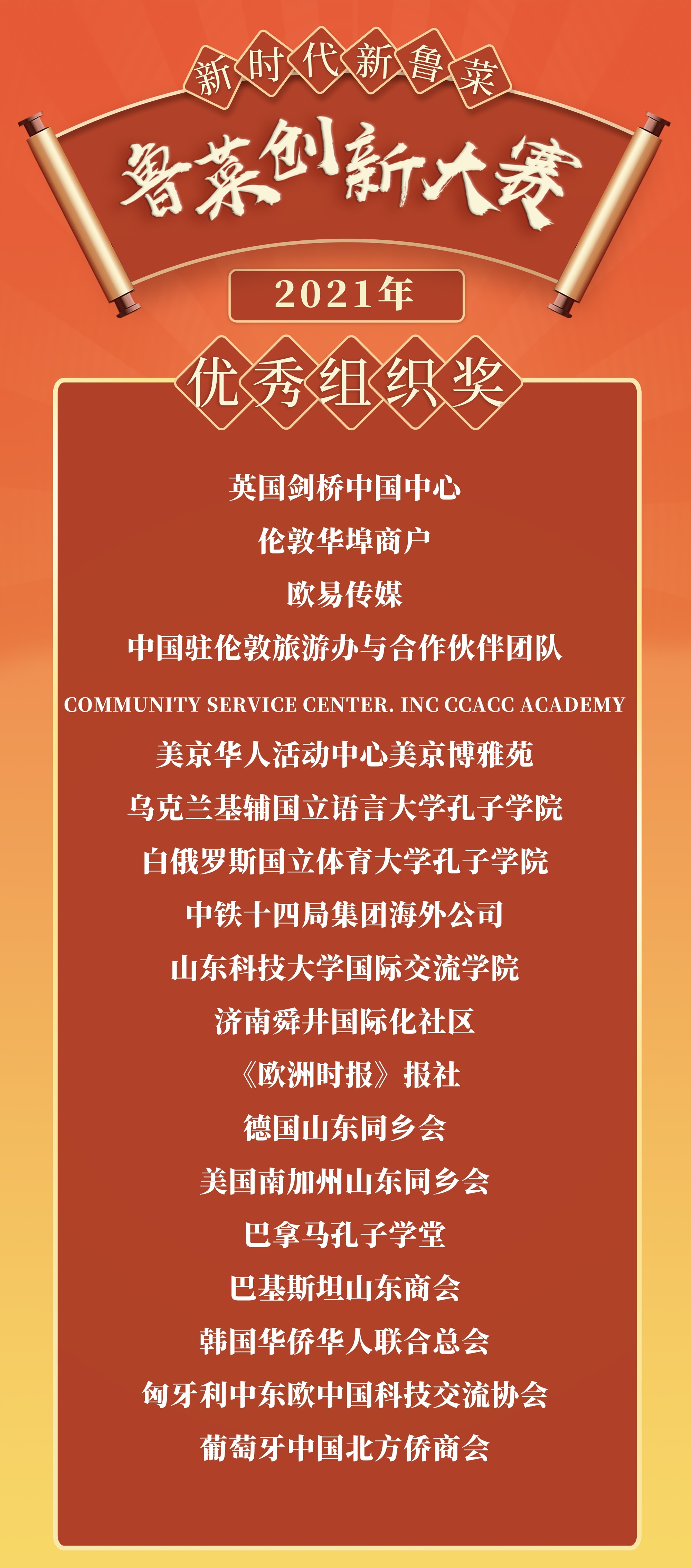 “新时代新鲁菜”2021鲁菜创新大赛海外优秀传播奖