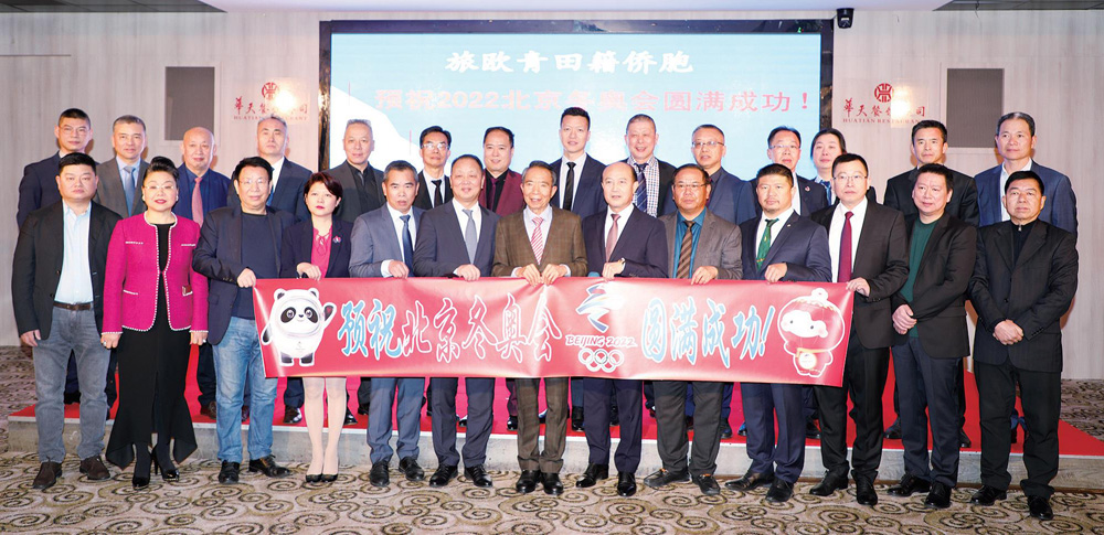 旅法青田籍侨领祝福北京冬奥,一起向未来。(图片来源:欧洲时报记者黄冠杰 摄)