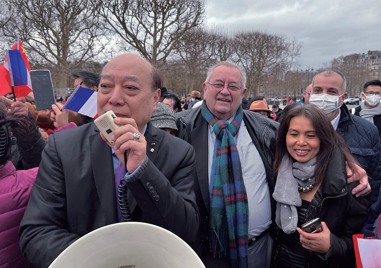 中国驻法使馆领侨处一秘李成元也赶到现场,和到场的民众一起为北京喝彩、加油。他感谢大家对北京冬奥会的支持,同时也代表中国驻法使馆向大家致以春节的祝福。