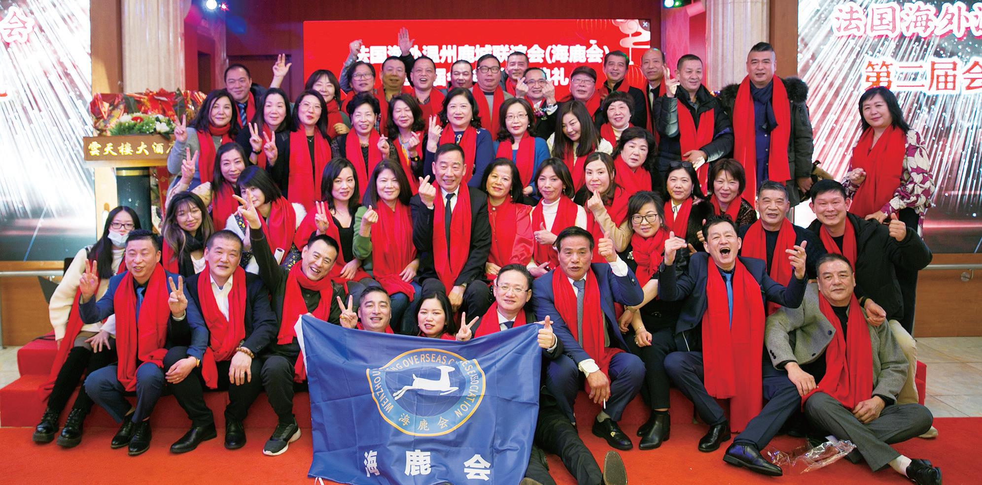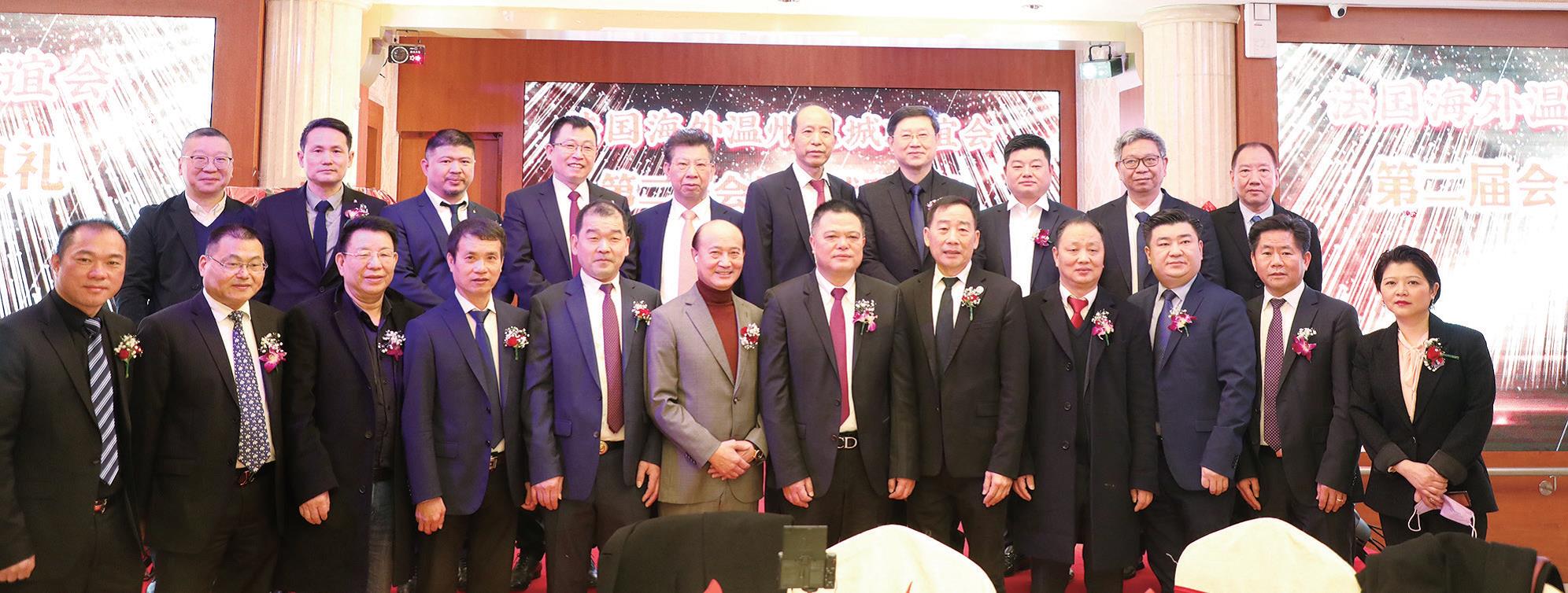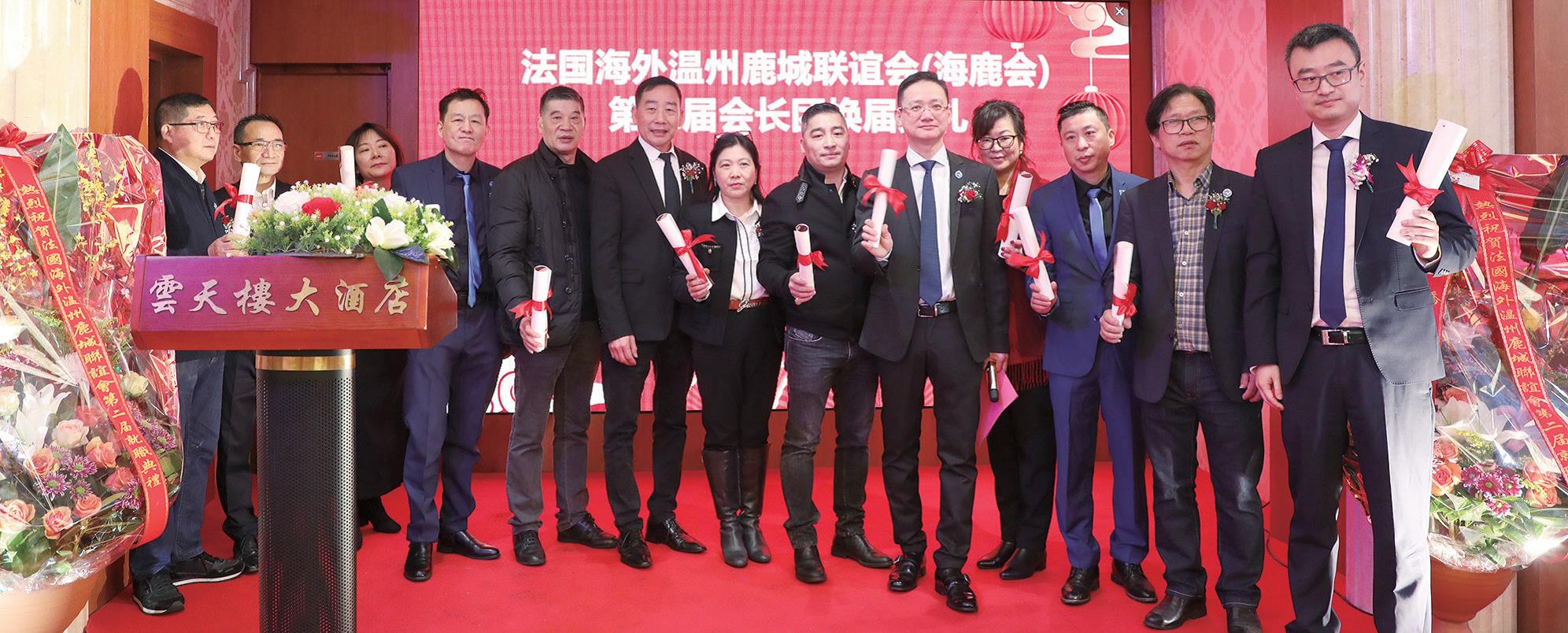 法国温州鹿城联谊会第二届会长团成员在就职典礼现场。