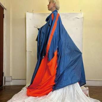 在此次伦敦时装周秀场中,寓意着飘忽不定的“风”成了她作品中的关键元素。通过研究风的形态以及其他与风有关的事物,将中国移民群体离开家乡的漂泊感与孤独感融入作品中——风筝随风飘扬万里,心有戚戚。