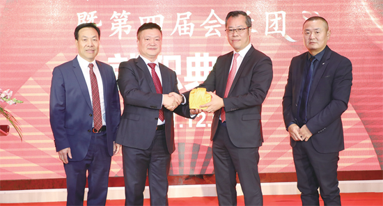 在第三届理事会监事长唐晓华、第四届理事会监事长陈建的监礼下,洪震波从蔡足焕手上接过会印,标志着第四届理事会正式开始履职。