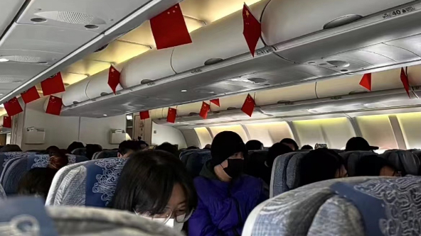 有留学生拍摄的视频显示,撤侨航班机舱中挂满了五星红旗,工作人员穿着防护服,背后写着“欢迎回家,I love China(我爱中国)”,这让不少担惊受怕多日的留学生热泪盈眶。