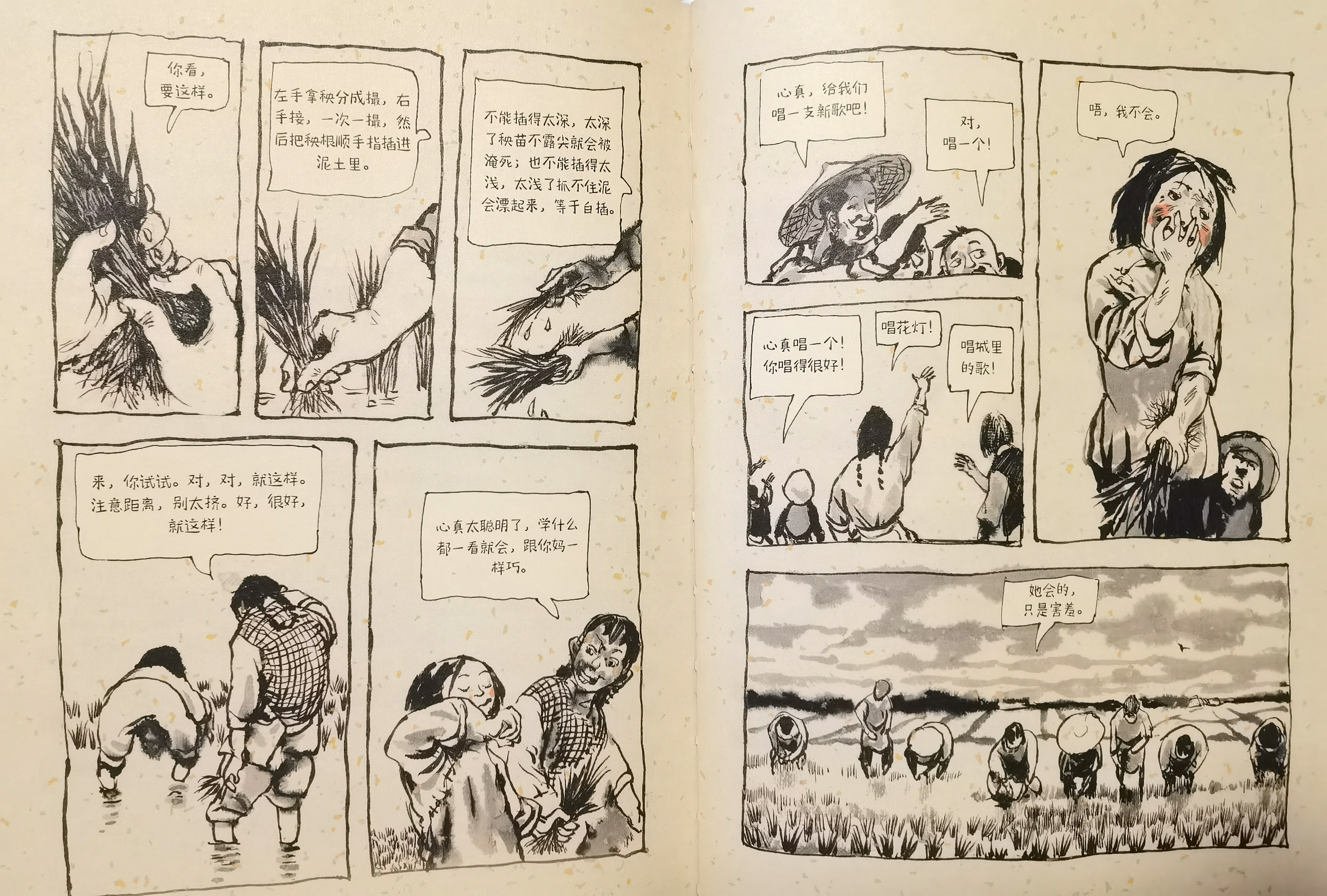 《我的母亲:心真》描述母亲年前时插秧劳作的场景。(翻拍资料)