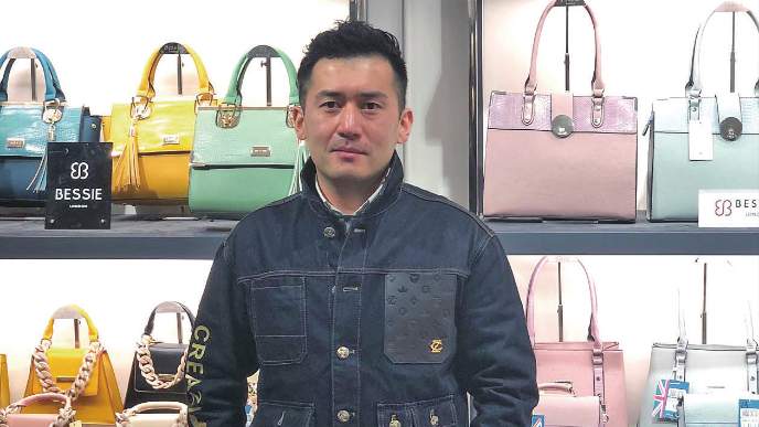 施克俊18岁时在伦敦创立了女包品牌——Bessie London。图为他在自己的店里。