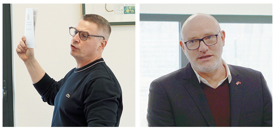 图为欧洲中医药学院名誉院长Chrys WILBOIS教授(左),Philippe BOEGLIN教授为学生授课。