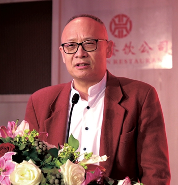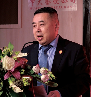 法国深圳联谊会暨总商会第二届会长吴秦发表就任感言。
