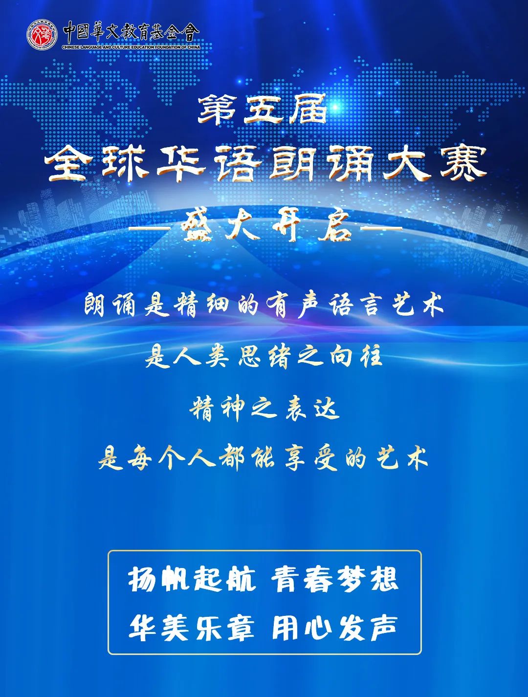 由中国华文教育基金会主办,北京广播电视台承办,完美(中国)有限公司、中国青少年发展基金会资助的2022年第五届全球华语朗诵大赛已正式启动。赛事采用线上评选的方式进行,来自全球6大洲32个国家的华裔青少年共同参加本届大赛。