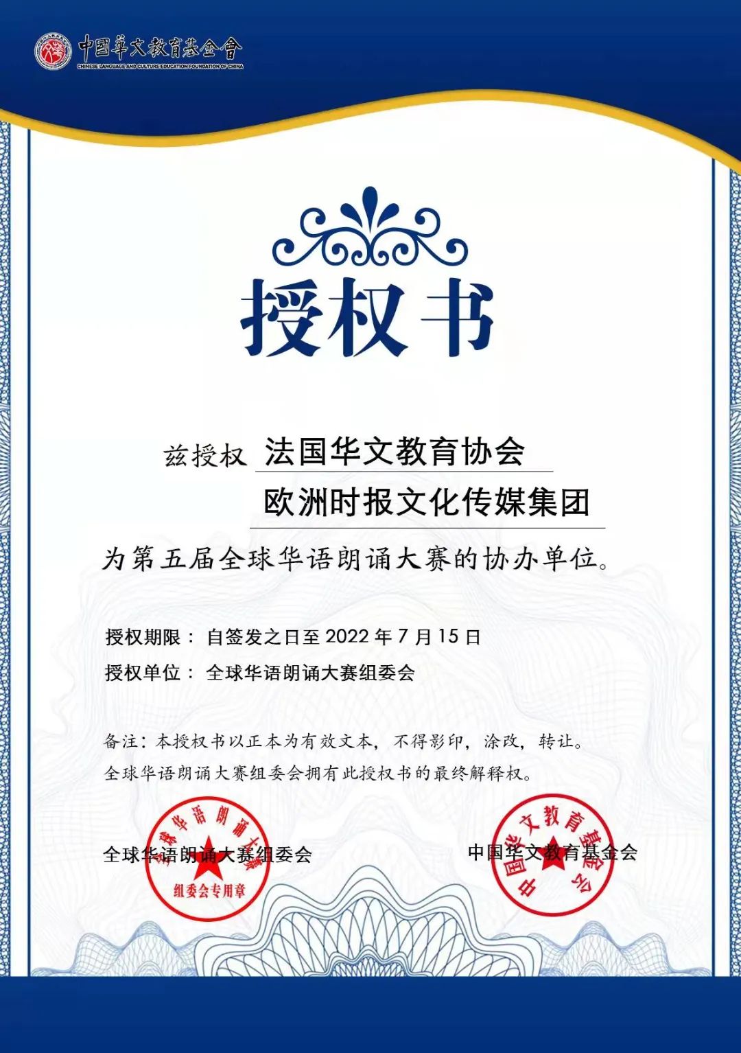 经大赛授权,法国华文教育协会和欧洲时报文化传媒集团共同协办第五届全球华语朗诵大赛法国地区的比赛。