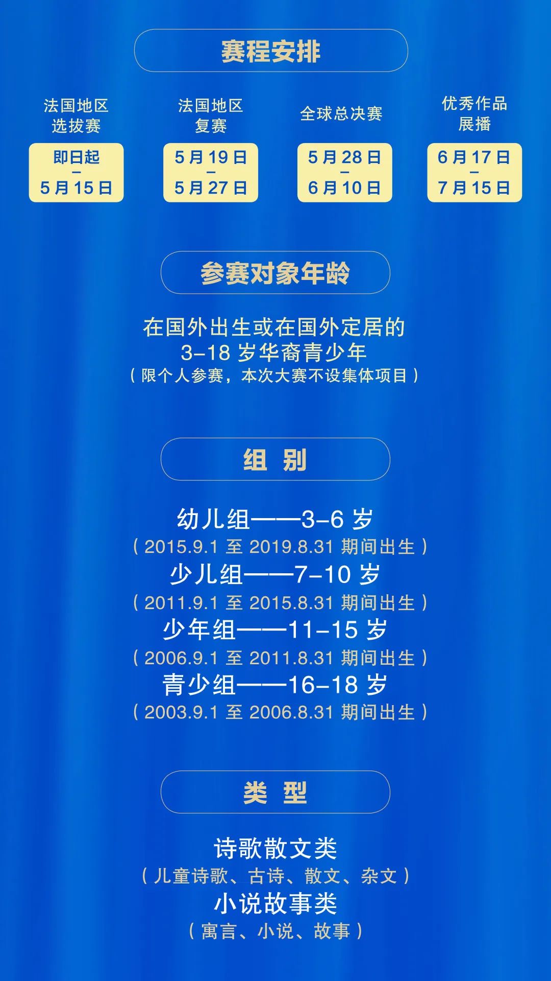 有意参与协办第五届全球华语朗诵大赛法国赛事的华文学校、华教组织或侨团,请于5月1日前与欧洲时报文化中心徐老师联络,邮箱:culture@oushinet.com