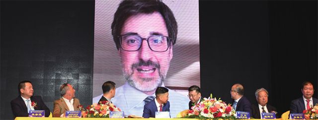 米兰市政府代表Gaia Romani通过视频祝贺换届庆典大会召开。