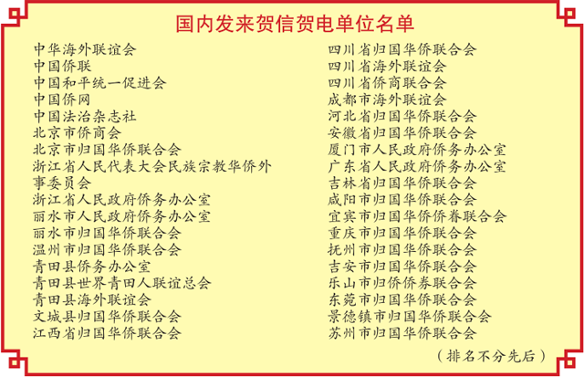 副理事长胡志顶宣读中国侨联发来的贺电。