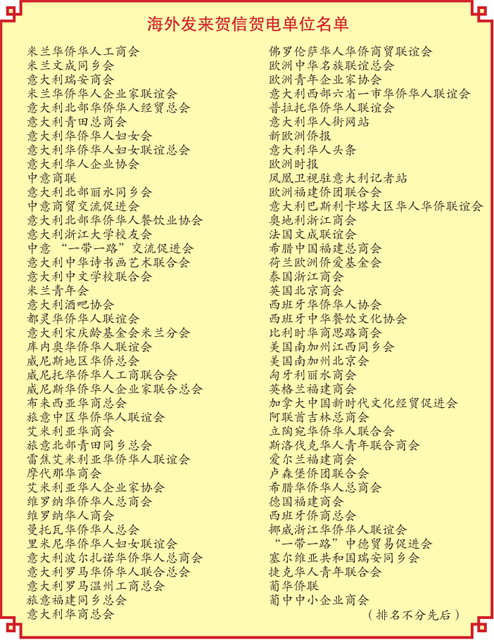 尊敬的米兰浙江侨商联合会的全体同仁: