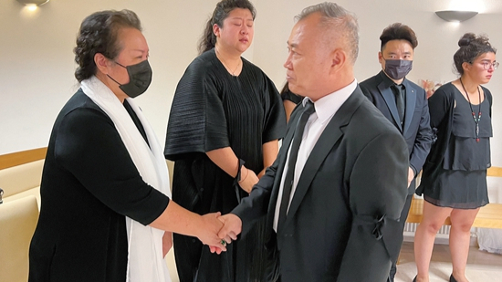 李成元一秘向佟效贡夫人周虹表示慰问。(图片来源:本文图片由黄冠杰 摄)