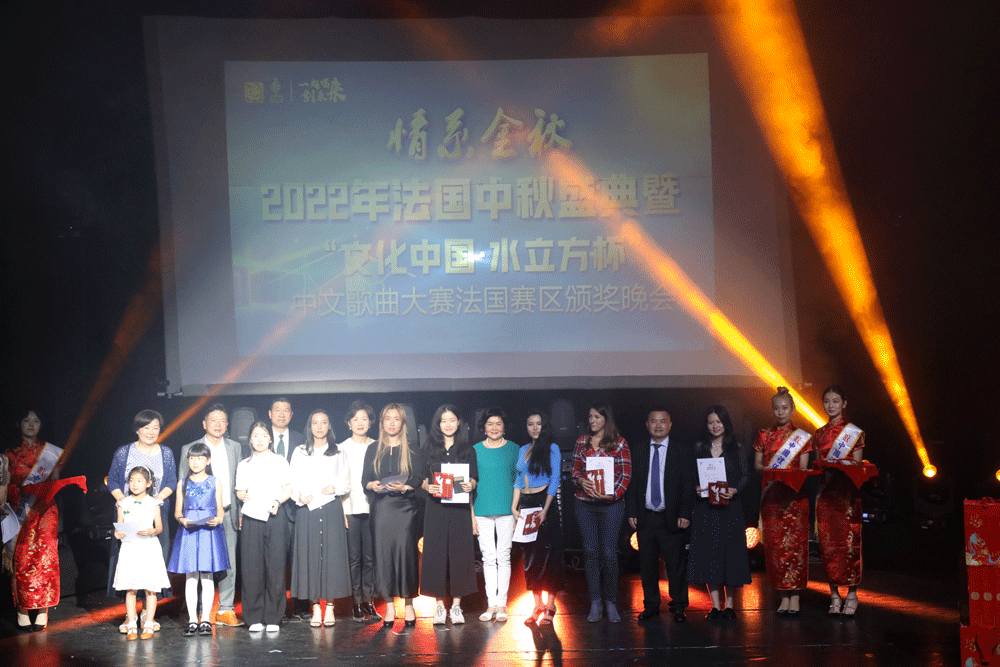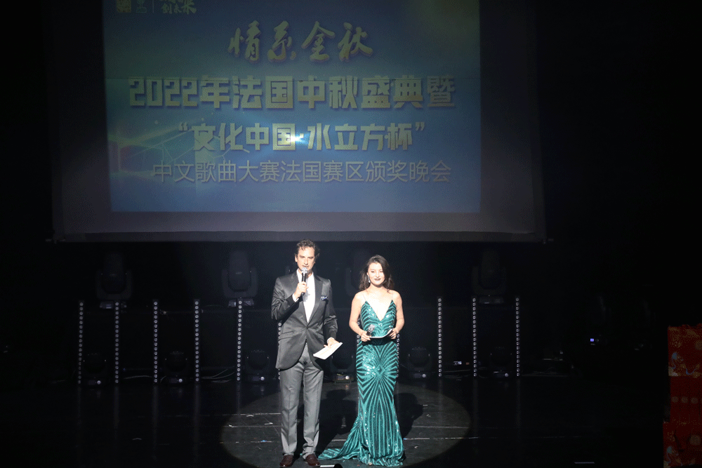 “海上生明月,天涯共此时”。蔡君柱主席表示,今晚,侨学界及法国友人欢聚一堂,共庆中国传统佳节中秋节,并为获得“文化中国·水立方杯”中文歌曲大赛法国赛区各位获奖者颁奖。他代表旅法侨界和这次比赛的大赛主办、协办和支持单位向各位获奖选手表示热烈祝贺,对历届支持大赛的评委、艺术家以及积极参与比赛的各单位表示衷心的感谢。向旅法侨胞、留学生、法国友人致以节日的亲切问候和美好祝福。