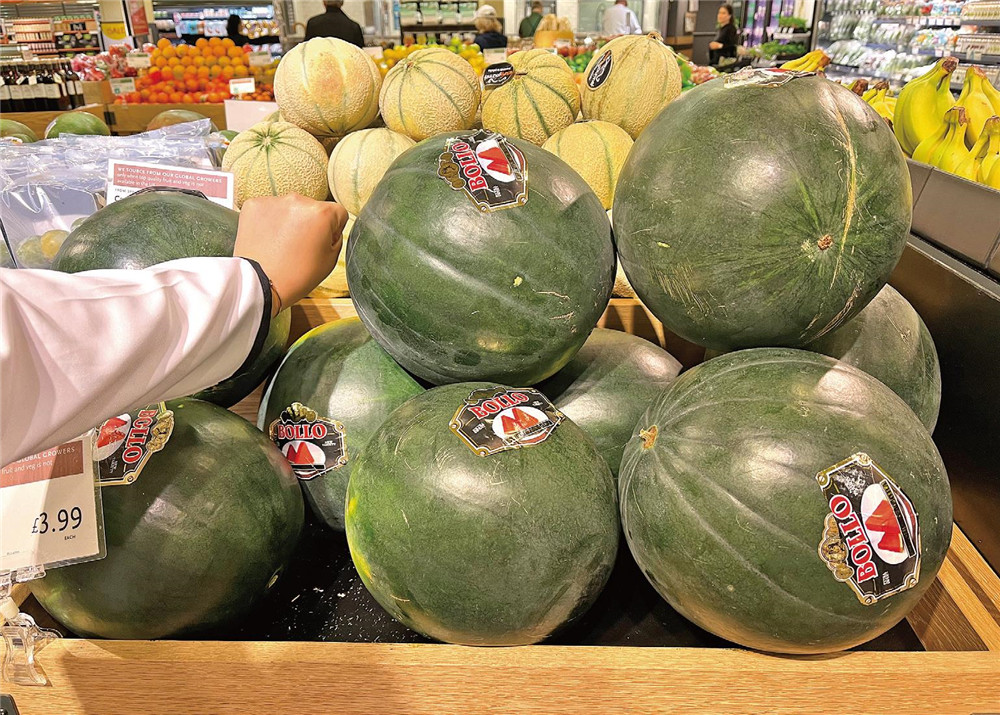 近期,英国物价以40多年来最快的速度上涨。图为留英学生葛小聃在伦敦Whole Foods Market超市内拍摄的西瓜。(图片来源:受访者供图)