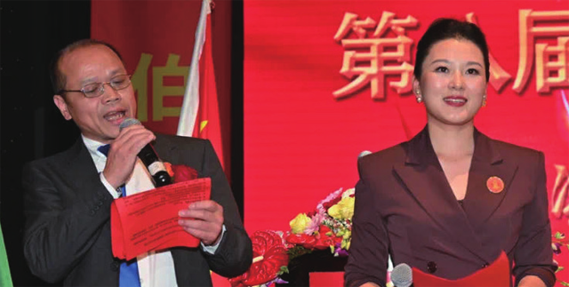 米兰文成同乡会秘书长杨熙友与主持人周洁联袂主持换届庆典大会。