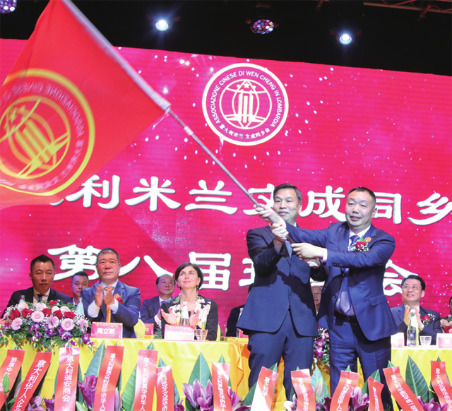 【欧洲时报记者夏晓彤米兰图文报道】10月24日晚,米兰文成同乡会第八届理事会换届庆典大会在米兰新希尔大酒店隆重举行。中国驻米兰总领事刘侃、副总领事张凯斌,意大利陆军上将、欧盟欧洲对外行动服务局主任Vincenzo Coppola,米兰副市长Michela Plestra,意大利意中友协主席波塞利,米兰华侨华人工商会会长周立新,欧洲文成华侨华人社团联合总会主席刘小慧,意大利各兄弟侨团代表,欧洲部分国家侨团代表,中资企业代表、留学生、意大利友人、媒体代表等500余人出席了庆典大会。米兰文成籍著名侨领胡海滨众望所归,当选第八届米兰文成同乡会会长。