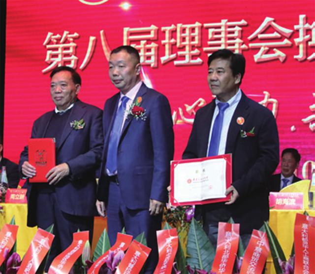 胡海滨会长向胡志珊、胡克科、王重倍颁发高级顾问证书。