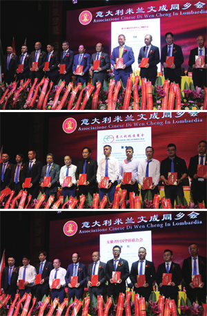 向胡长钦等35人颁发资助者荣誉证书,以表彰他们在米兰文成同乡会购买会址工作中倾囊相助。