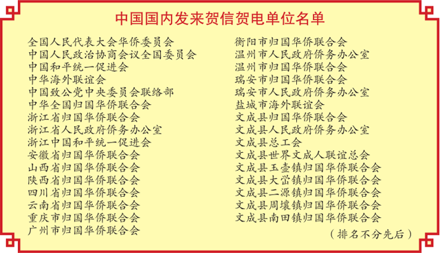 执行会长蔡忠杰宣读第八届理事会成员名单,执行会长周月宇宣读全国人民代表大会华侨委员会贺电,理事长吴步奎宣读中国人民政治协商会议全国委员会贺电。