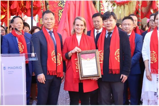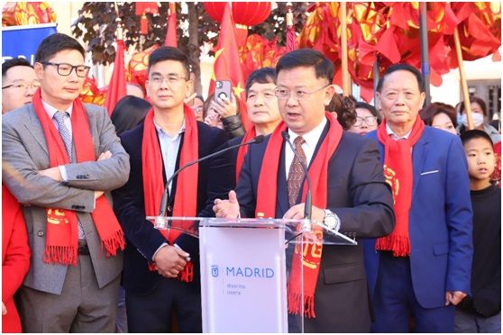 Usera区议员主席洛蕾托·索多·露易丝代表西班牙方致辞。她表示,明年将是中国和西班牙建交50周年,自1973年开始,中西两国之间就一直保持着和平友好的往来关系,马德里人民和usera华人社区的友谊同样在建交的契机之下生根发芽,历经30余年,愈发丰富多元,日新月异。