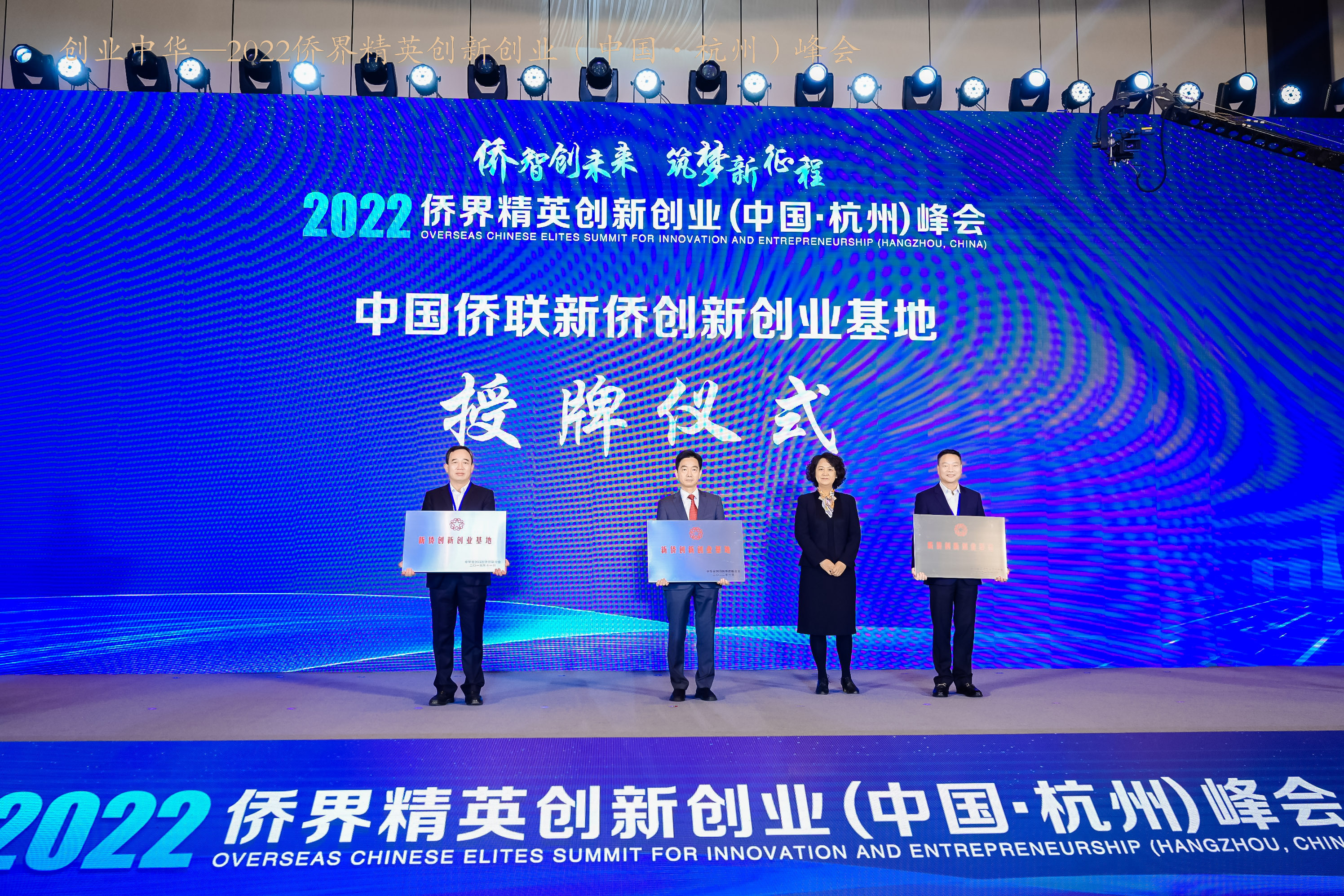 中国侨联副秘书长、经济科技部部长赵红英为杭州城西科创大走廊、宁波国家高新区新材料科技城、温州市国家大学科技园(海归人才创新创业园)授予“中国新侨创新创业基地”牌子。