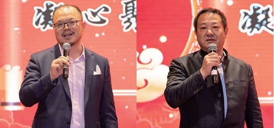 从左至右分别为发起和倡导者卢汉军、米兰网上方舱医院负责人朱金亮发表讲话。