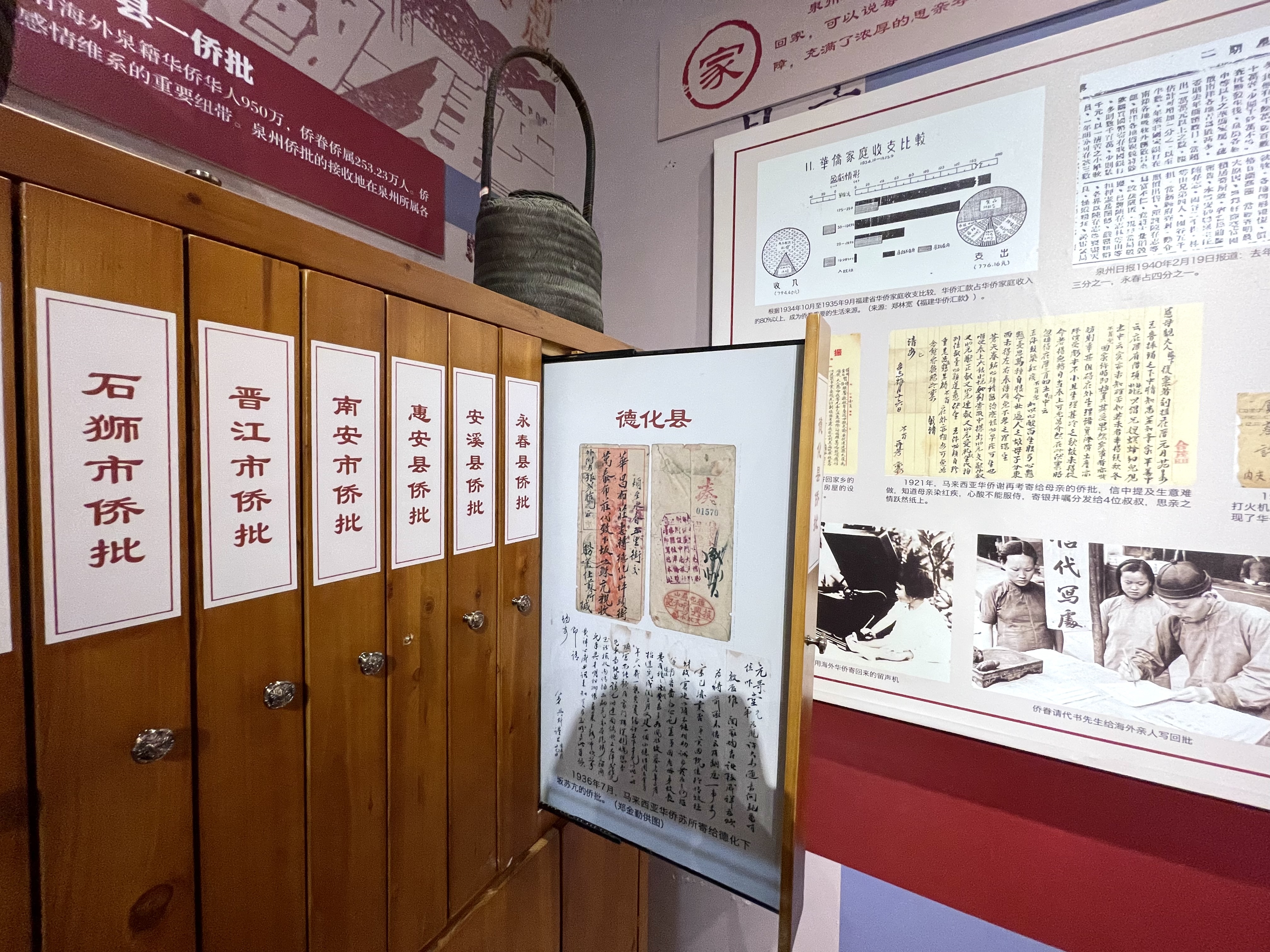 图为泉州侨批馆根据不同县,分类整理的侨批。