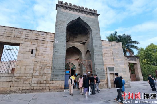 海外华媒人士走进中国现存最古老的伊斯兰教寺——泉州清净寺。(图片来源:中新网)