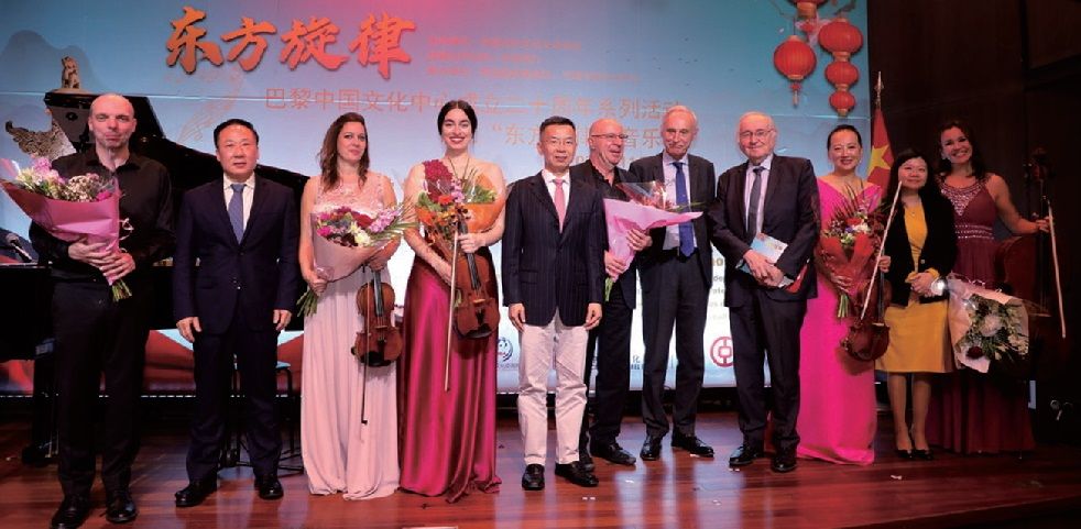 【欧洲时报记者黄冠杰巴黎报道】11月17日晚,由中国对外文化交流协会主办,巴黎中国文化中心、中国歌剧舞剧院承办的“东方旋律”音乐会在巴黎成功举行。中国驻法国大使卢沙野、文化公参严振全,法国新里昂中法大学副主席阿兰•拉巴特(Alain LABAT)、法国政治学者贝文江(Jean PÉGOURET),巴黎中国文化中心主任佘明远以及法国文艺界人士等200余人出席活动。音乐家尚•马龙、左汉与艺韵女子弦乐四重奏乐团为观众呈献上一台包括《东方旋律》《莫扎特:G大调弦乐小夜曲》《茉莉花》《我和我的祖国》等中外名曲荟萃的艺术盛宴。本场音乐会东西方音乐交融、经典与时代辉映,为中欧人文交流奏响新的篇章。