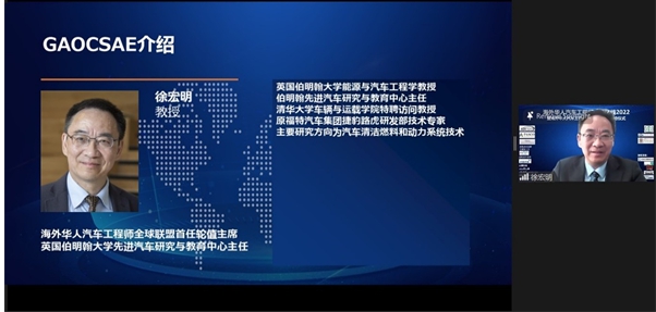 海外华人汽车工程师全球联盟首任轮值主席,英国伯明翰大学先进汽车研究与教育中心主任徐宏明教授的GAOCSAE介绍。