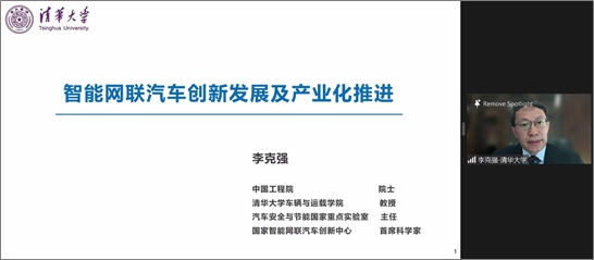 中国工程院院士,国家智能网联汽车创新中心首席科学家,清华大学车辆与运载学院李克强教授的题为《智能网联汽车发展及其产业化推进实践》的主旨演讲。