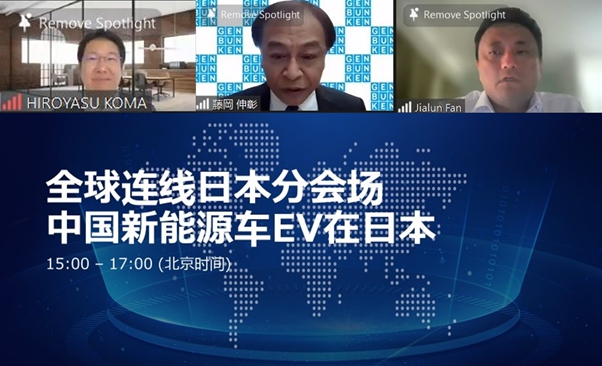 第一天的第三个议程是全球连线日本分会场报告环节。株式会社現代文化研究所技术专家藤岡伸彰,Folofly株式会社CEO小間裕康,巨一动力系统有限公司日本分公司CEO范佳伦,通过具体案例详细介绍了日本市场的现状与课题,今后对EV的市场普及需求,中国新能源车EV在日本市场的推广及应用。相比欧美中国市场的EV普及率,日本市场的EV普及还略显缓慢,但是针对日本政府所提出的2050碳中和战略目标,日本市场的人口老龄化,劳动力不足等社会问题,电动化,智能化等技术有待更快的发展普及,日本企业也积极寻求与国内企业之间的交流与合作。日本分会场三位嘉宾的演讲题目分别为《日本物流领域电动汽车的市场需求》,《日本EV物流车市场的变革》以及《新能源汽车800V高压系统可靠性开发》。