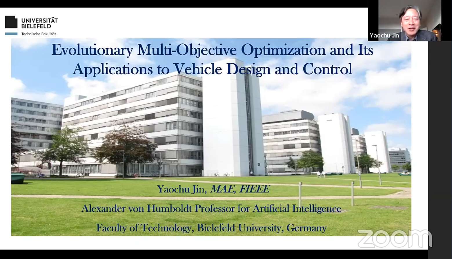 全球连线欧洲分会场,德国比勒菲尔德大学工程学院“洪堡人工智能讲席教授”,兼英国萨里大学计算机系“计算智能”讲席教授,欧洲科学院院士金耀初教授的题为《人工智能在电动化汽车技术研发中的应用与展望》的主旨演讲。