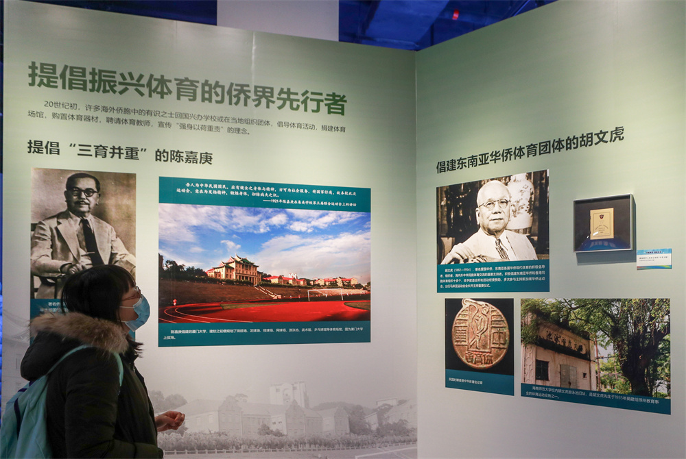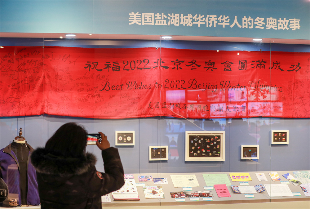 1月20日,华侨冰雪博物馆落成典礼暨“共筑梦想同赴未来——华侨华人与冬奥主题展”在位于北京的中国华侨历史博物馆开幕。展览分为5个篇章,通过近400张图片、300多件实物展品、200多段视频资料和100余件艺术作品,多角度全方位回顾展示海外侨胞和归侨侨眷为中国体育事业特别是冰雪运动所发挥的重要作用。图为观众参观展览。(图片来源:本文图片均自中新社)