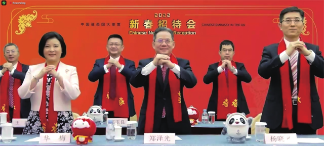 2022年1月24日,中国驻英国使馆举办2022年春节线上招待会。(图片来源:本文图片如无特殊说明均据欧洲时报英国版)