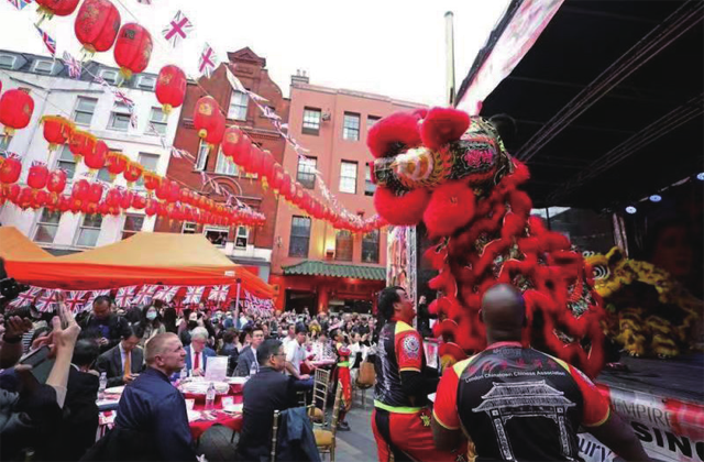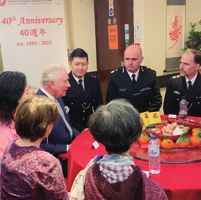 2022年2月1日,华人资料及咨询中心(CIAC,以下简称中心)迎来成立40周年纪念。国王查尔斯和王后卡米拉(时任王储和康沃公爵夫人)现身中国城,同CIAC主席杨庆权太平绅士一同庆祝40周年纪念及中国农历春节。