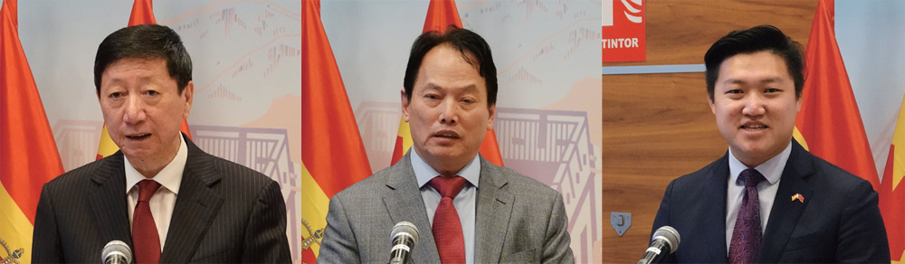 从左至右:吴海涛致辞;蒋铜官致辞;段炼致辞。(图片来源:欧洲时报西班牙版林碧燕摄)