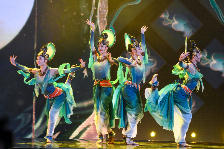 艺术家们演绎唯美舞蹈《迦陵频伽》。(图片来源:中新社)