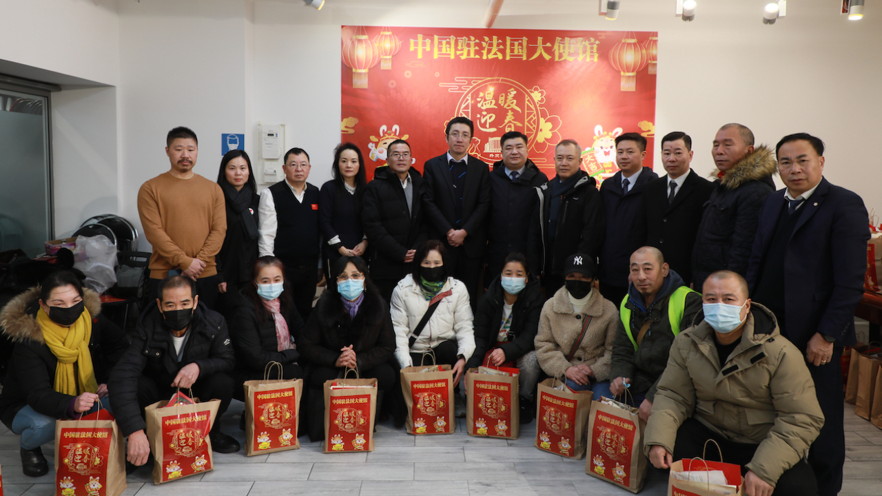 中国驻法大使馆向旅法华侨华人发放兔年春节慰问包
